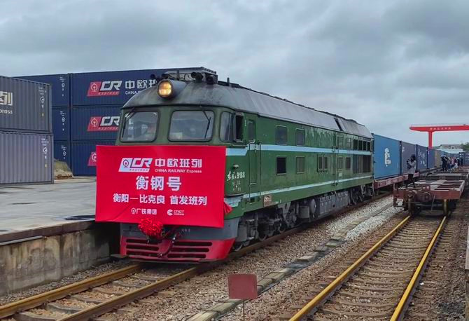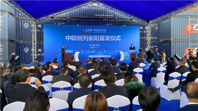 2020年10月15日上午,中歐班列“衡陽(yáng)——比克良”首發(fā)式在鐵路衡陽(yáng)南站舉行,標(biāo)志著衡陽(yáng)首次開通至歐洲國(guó)家的鐵路國(guó)際物流通道。湖南省人民政府副秘書長(zhǎng)陳獻(xiàn)春出席啟動(dòng)儀式并宣布衡陽(yáng)首列中歐班列發(fā)車。衡陽(yáng)市委書記鄧群策致辭,湖南省商務(wù)廳、長(zhǎng)沙海關(guān)、中國(guó)鐵路金華局集團(tuán)、華菱衡鋼相關(guān)領(lǐng)導(dǎo)出席活動(dòng)。(中歐班列“衡陽(yáng)——比克良”首發(fā)列車國(guó)際班列首發(fā)式在鐵路衡陽(yáng)南站舉行)